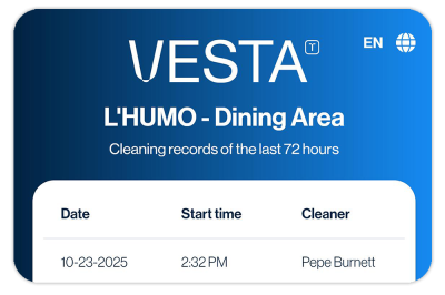 With VESTA, every cleaning is timestamped and verified, reducing missed tasks and repetitive complaints.